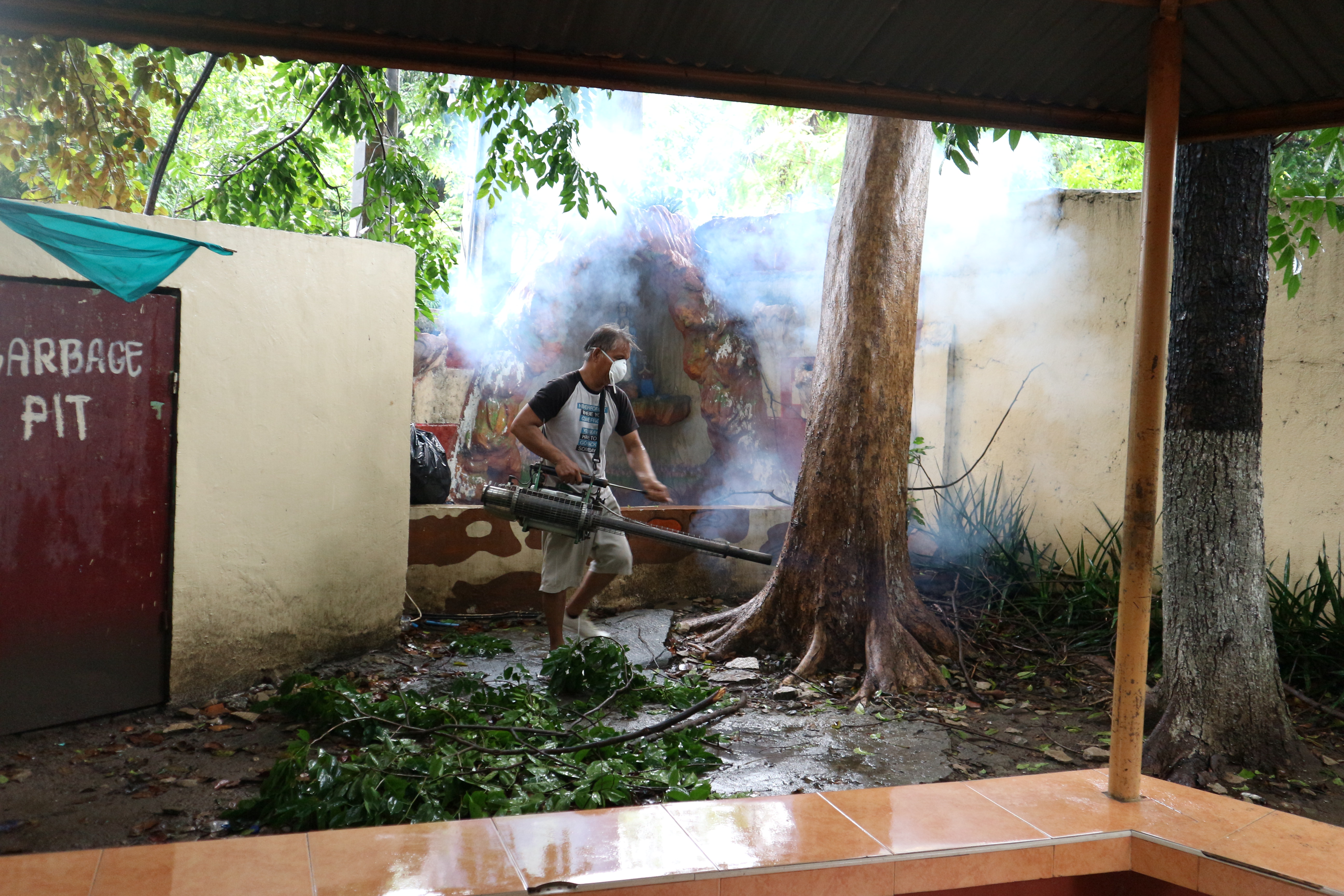 IMG_6882 Published August 3, 2019 at 5184 × 3456 in IMG_6882 A maintenance staff fogs possible breeding grounds of dengue-carrying mosquitoes around the campus of CDNSHS, Pacita Complex, San Pedro, Laguna.