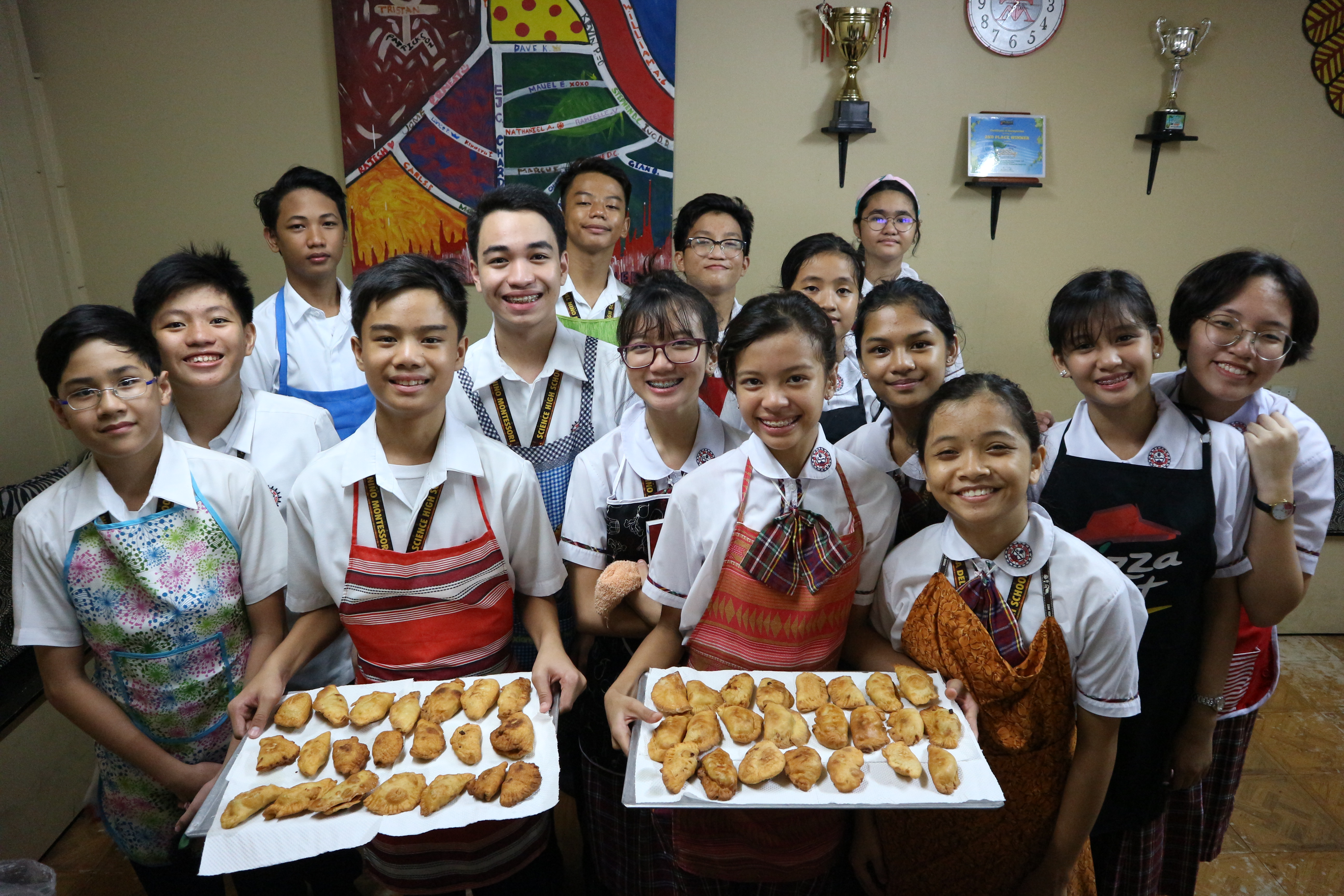 Grade 8 Baltimore Casans proudly display their finished Baked Chicken Empanada which they prepared as their 1st Quarter Examination under Ms. Mennie Aquino.